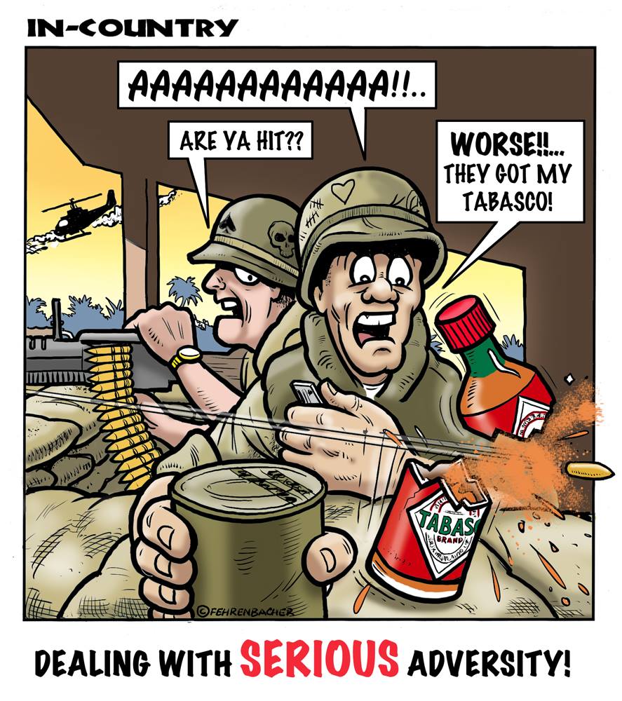 Phil enlisted in the Army in 1965 where he served for years in Vietnam.  He became a graphic designer and has worked for the state of Oregon for 26 years.  He retired in 2003 and started the Cartoon "In-Country".  The cartoons reflect his experiences during his tour of duty in South Vietnam.